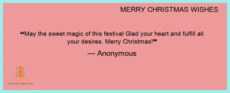 May the sweet magic of this festival Glad your heart and fulfill all your desires. Merry Christmas!
