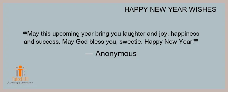 May this upcoming year bring you laughter and joy, happiness and success. May God bless you, sweetie. Happy New Year!