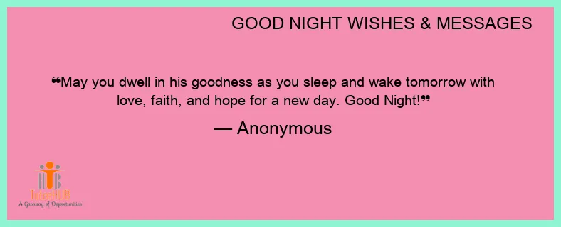 May you dwell in his goodness as you sleep and wake tomorrow with love, faith, and hope for a new day. Good Night!