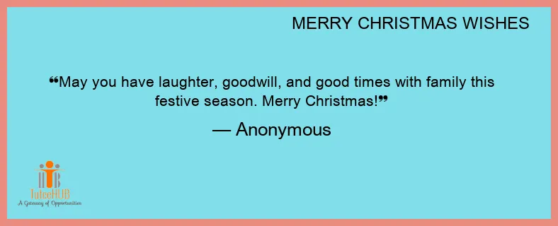 May you have laughter, goodwill, and good times with family this festive season. Merry Christmas!