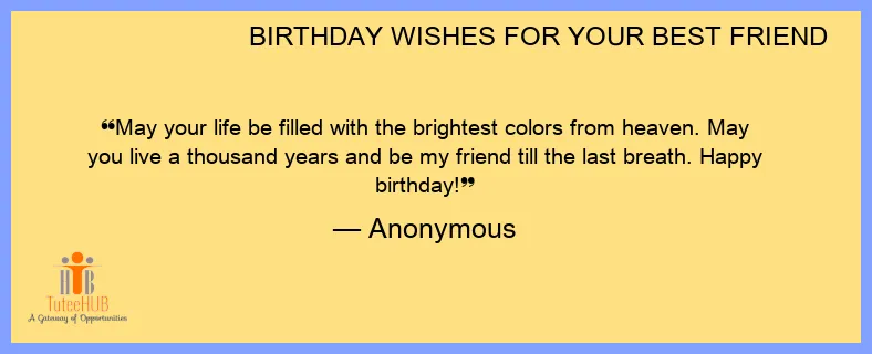 May your life be filled with the brightest colors from heaven. May you live a thousand years and be my friend till the last breath. Happy birthday!