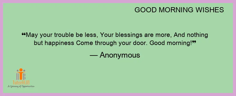 May your trouble be less, Your blessings are more, And nothing but happiness Come through your door. Good morning!