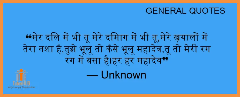 मेर दिल में भी तू मेरे दिमाग में भी तू,मेरे ख़यालों में तेरा नशा है,तुझे भूलू तो कैसे भूलू महादेव,तू तो मेरी रग रग में बसा है।हर हर महादेव