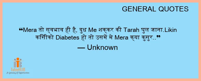 Mera तो स्वभाव ही है, दुध Me शक्कर की Tarah घुल जाना.Likin किसीको Diabetes हो तो उसमें मे Mera क्या कुसुर..
