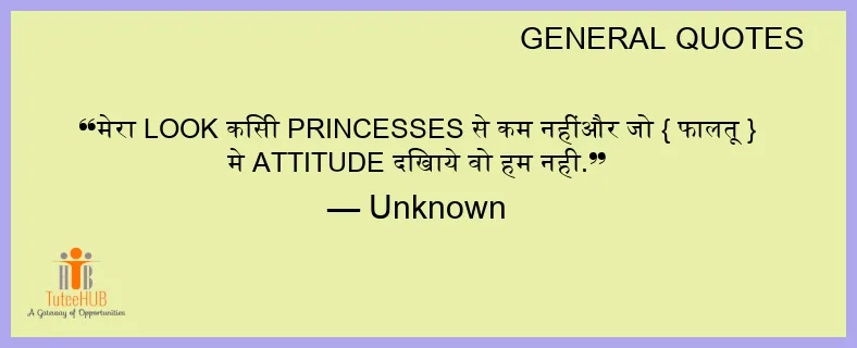 मेरा LOOK किसी PRINCESSES से कम नहींऔर जो { फालतू } मे ATTITUDE दिखाये वो हम नही.
