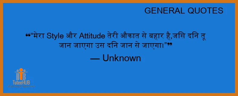“मेरा Style और ATTITUDE तेरी औकात से बहार है,जिस दिन तू जान जाएगा उस दिन जान से जाएगा।”