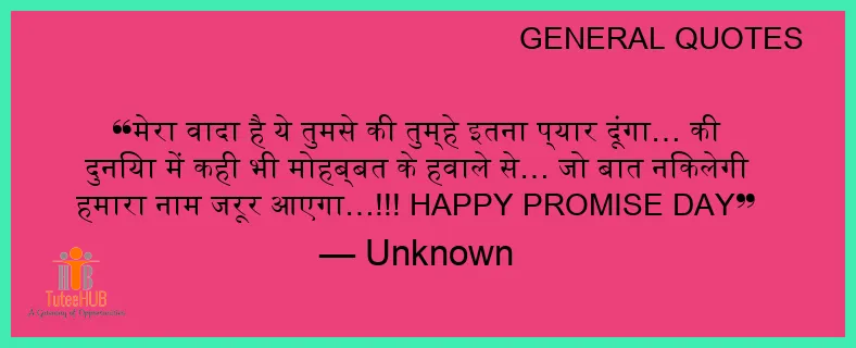 मेरा वादा है ये तुमसे की तुम्हे इतना प्यार दूंगा… की दुनिया में कही भी मोहब्बत के हवाले से… जो बात निकलेगी हमारा नाम जरूर आएगा…!!! HAPPY PROMISE DAY
