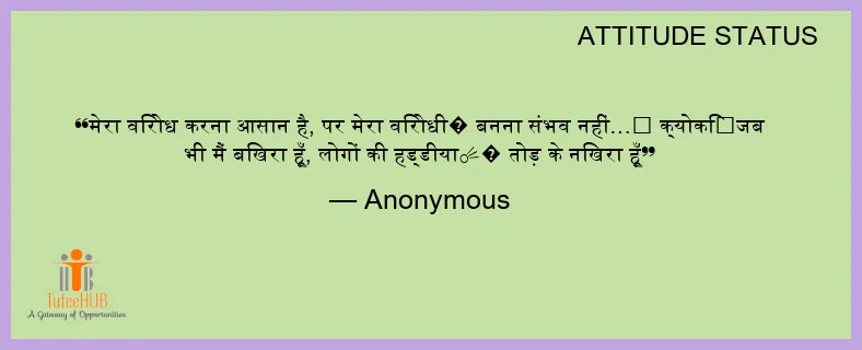 मेरा विरोध करना आसान है, पर मेरा विरोधी� बनना संभव नहीं…❌ क्योकि❓जब भी मैं बिखरा हूँ, लोगों की हड्डीया☄� तोड़ के निखरा हूँ