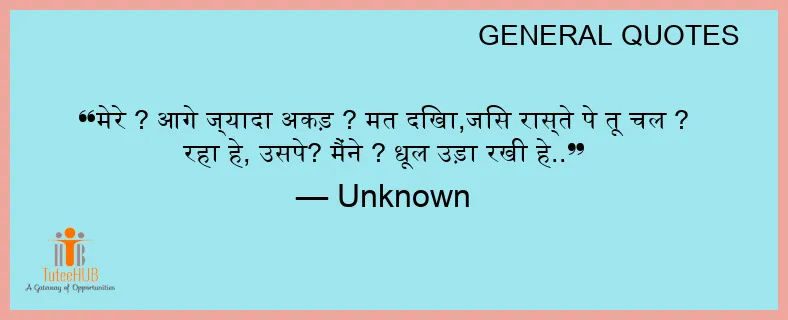 मेरे ? आगे ज्यादा अकड़ ? मत दिखा,जिस रास्ते पे तू चल ? रहा हे, उसपे? मैंने ? धूल उड़ा रखी हे..
