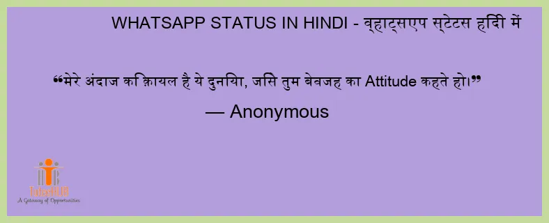 मेरे अंदाज कि क़ायल है ये दुनिया, जिसे तुम बेवजह का Attitude कहते हो।