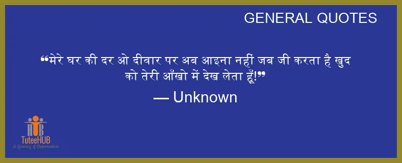 मेरे घर की दर ओ दीवार पर अब आइना नहीं जब जी करता है ख़ुद को तेरी आँखो में देख लेता हूँ!