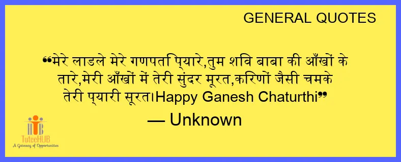 मेरे लाडले मेरे गणपति प्यारे,तुम शिव बाबा की आँखों के तारे,मेरी आँखों में तेरी सुंदर मूरत,किरणों जैसी चमके तेरी प्यारी सूरत।Happy Ganesh Chaturthi