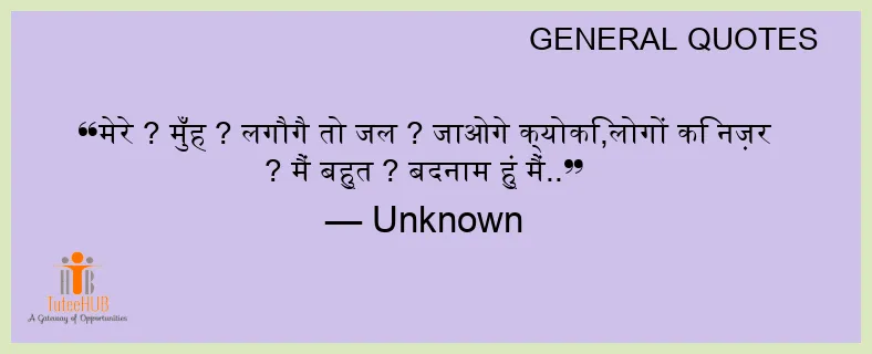 मेरे ? मुँह ? लगौगै तो जल ? जाओगे क्योकि,लोगों कि नज़र ? मैं बहुत ? बदनाम हुं मैं..