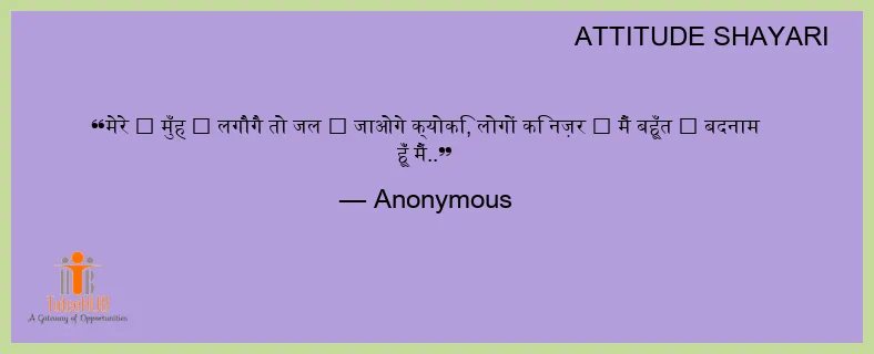 मेरे 🙋 मुँह 🗣 लगौगै तो जल 🔥 जाओगे क्योकि, लोगों कि नज़र 👁 मैं बहूँत 👌 बदनाम हूँं मैं..