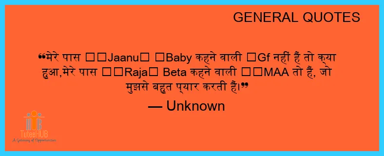 मेरे पास ‪‎Jaanu‬ ‪Baby कहने वाली ‪Gf नहीं हैं तो क्या हुआ,मेरे पास ‪‎Raja‬ Beta कहने वाली ‪‎MAA तो हैं, जो मुझसे बहुत प्यार करती हैं।