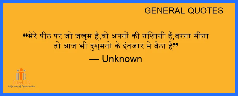 मेरे पीठ पर जो जख्म है,वो अपनों की निशानी हैं,वरना सीना तो आज भी दुश्मनो के इंतजार मे बैठा है
