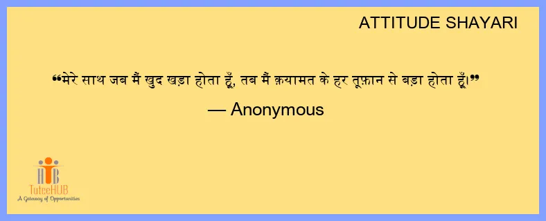 मेरे साथ जब मैं खुद खड़ा होता हूँ, तब मैं क़यामत के हर तूफ़ान से बड़ा होता हूँ।