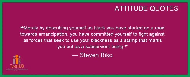Merely by describing yourself as BLACK you have started on a road towards EMANCIPATION, you have COMMITTED yourself to fight against all FORCES that seek to use your blackness as a stamp that MARKS you out as a subservient being.