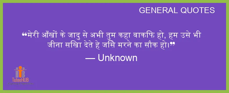 मेरी आँखों के जादु से अभी तुम कहा वाकिफ हो, हम उसे भी जीना सिखा देते हे जिसे मरने का सौक हो।