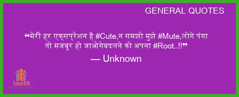 मेरी हर एक्सप्रेशन है #CUTE,न समझो मुझे #Mute,लोगे पंगा तो मजबूर हो जाओगेबदलने को अपना #Root..!!