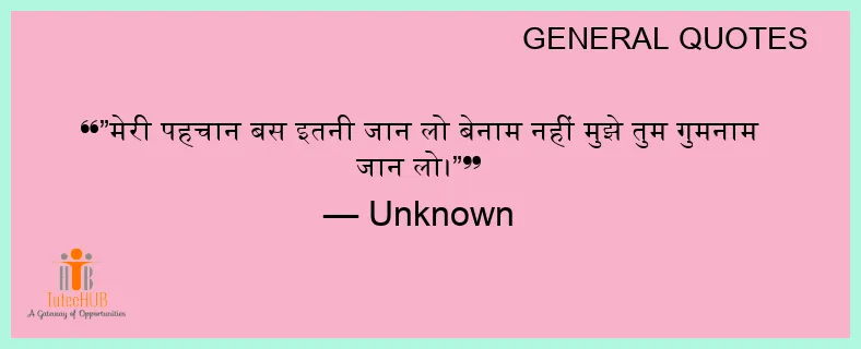 ”मेरी पहचान बस इतनी जान लो बेनाम नहीं मुझे तुम गुमनाम जान लो।”