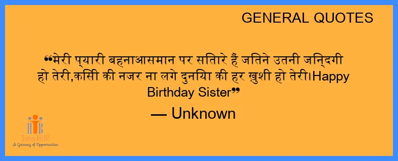 मेरी प्यारी बहनाआसमान पर सितारे हैं जितने उतनी जिन्दगी हो तेरी,किसी की नजर ना लगे दुनिया की हर ख़ुशी हो तेरी।Happy Birthday Sister