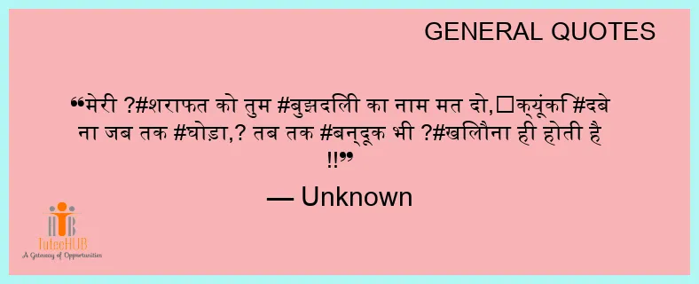 मेरी ?#शराफत को तुम #बुझदिली का नाम मत दो,❌क्यूंकि #दबे ना जब तक #घोड़ा,? तब तक #बन्दूक भी ?#खिलौना ही होती है !!