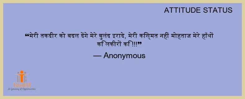मेरी तकदीर को बदल देंगे मेरे बुलंद इरादे, मेरी किस्मत नहीं मोहताज मेरे हाँथों कि लकीरों कि !!!