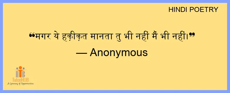 मगर ये हक़ीक़त मानता तु भी नहीं मैं भी नहीं।