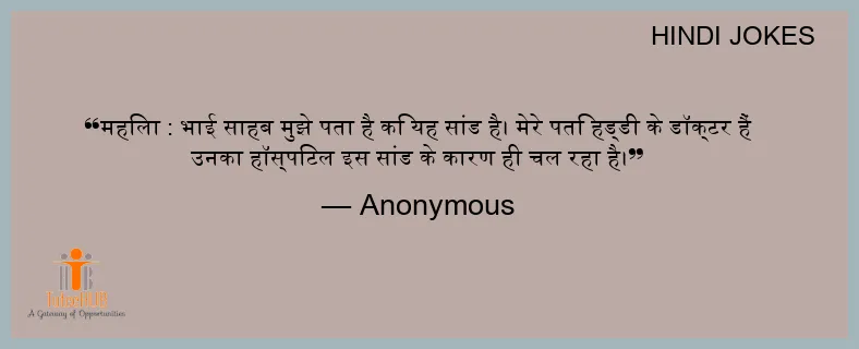 महिला : भाई साहब मुझे पता है कि यह सांड है। मेरे पति हड्डी के डॉक्टर हैं उनका हॉस्पिटल इस सांड के कारण ही चल रहा है।
