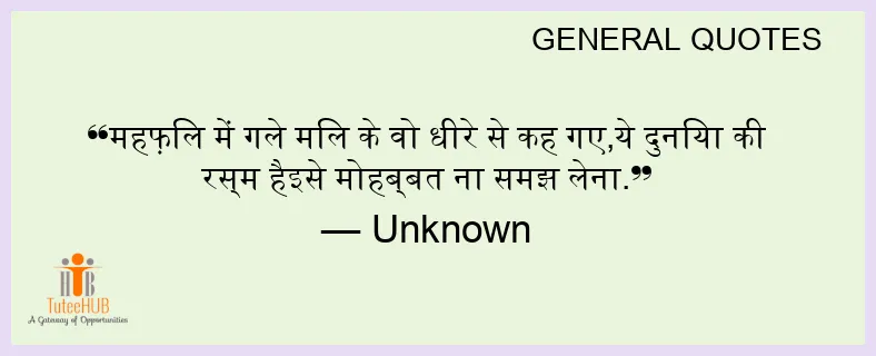 महफ़िल में गले मिल के वो धीरे से कह गए,ये दुनिया की रस्म हैइसे मोहब्बत ना समझ लेना.