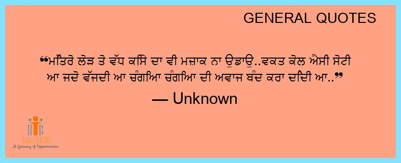 ਮਿੱਤਰੋ ਲੋੜ ਤੋ ਵੱਧ ਕਿਸੇ ਦਾ ਵੀ ਮਜ਼ਾਕ ਨਾ ਉਡਾਉ..ਵਕਤ ਕੋਲ ਐਸੀ ਸੋਟੀ ਆ ਜਦੋ ਵੱਜਦੀ ਆ ਚੰਗਿਆ ਚੰਗਿਆ ਦੀ ਅਵਾਜ ਬੰਦ ਕਰਾ ਦਿੰਦੀ ਆ..