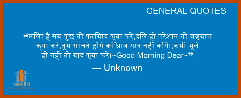 मिला है सब कुछ तो फरियाद क्या करें,दिल हो परेशान तो जज़्बात क्या करें,तुम सोचते होंगे कि आज याद नहीं किया,कभी भूले ही नहीं तो याद क्या करें।~Good Morning Dear~