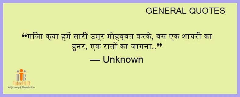 मिला क्या हमें सारी उम्र मोहब्बत करके, बस एक शायरी का हुनर, एक रातों का जागना..