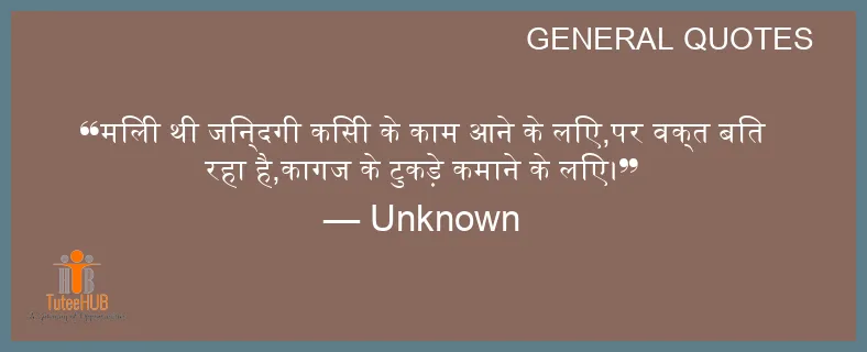 मिली थी जिन्दगी किसी के काम आने के लिए,पर वक्त बित रहा है,कागज के टुकड़े कमाने के लिए।