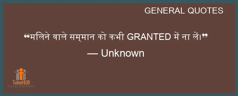 मिलने वाले सम्मान को कभी GRANTED में ना लें।