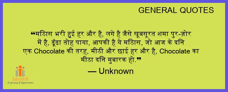मिठास भरी हुई हर और है, लगे है जैसे खूबसूरत शमा पुर-ज़ोर में है, ढूँढा तोह पाया, आपकी है ये मिठास, जो आज के दिन एक Chocolate की तरह, मीठी और छाई हर और है, Chocolate का मीठा दिन मुबारक हो.