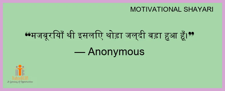 मजबूरियाँ थी इसलिए थोड़ा जल्दी बड़ा हुआ हूँ।