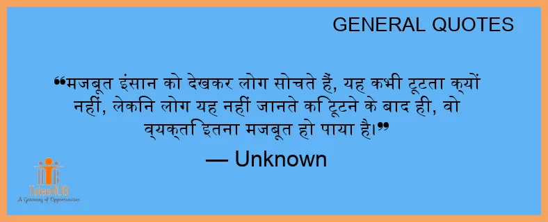 मजबूत इंसान को देखकर लोग सोचते हैं, यह कभी टूटता क्यों नहीं, लेकिन लोग यह नहीं जानते कि टूटने के बाद ही, वो व्यक्ति इतना मजबूत हो पाया है।