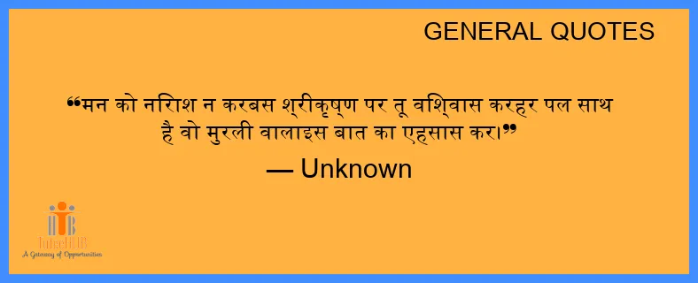 मन को निराश न करबस श्रीकृष्ण पर तू विश्वास करहर पल साथ है वो मुरली वालाइस बात का एहसास कर।
