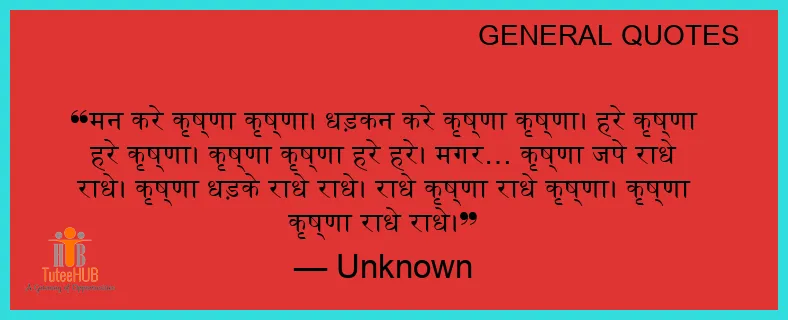 मन करे कृष्णा कृष्णा। धड़कन करे कृष्णा कृष्णा। हरे कृष्णा हरे कृष्णा। कृष्णा कृष्णा हरे हरे। मगर… कृष्णा जपे राधे राधे। कृष्णा धड़के राधे राधे। राधे कृष्णा राधे कृष्णा। कृष्णा कृष्णा राधे राधे।