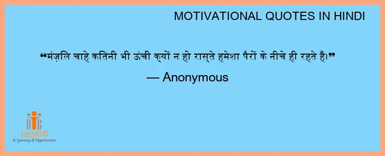 मंज़िल चाहे कितनी भी ऊंची क्यों न हो रास्ते हमेशा पैरों के नीचे ही रहते हैं।