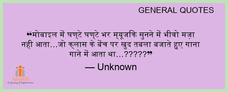 मोबाइल में घण्टे घण्टे भर म्यूजिक सुनने में भीवो मज़ा नही आता…जो क्लास के बेंच पर खुद तबला बजाते हुए गाना गाने में आता था…?????