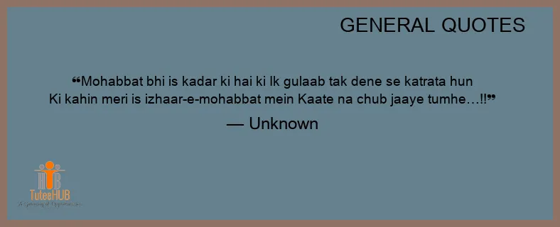 MOHABBAT BHI is KADAR ki HAI ki Ik gulaab tak dene se katrata hun Ki kahin meri is izhaar-e-mohabbat mein Kaate NA chub jaaye tumhe…!!