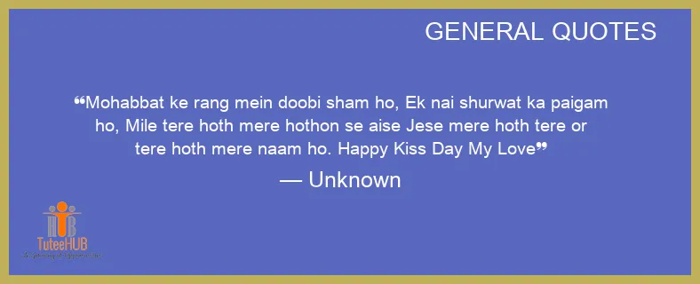 MOHABBAT ke rang mein doobi sham HO, Ek nai shurwat KA paigam ho, Mile tere hoth mere hothon se aise Jese mere hoth tere or tere hoth mere naam ho. Happy KISS DAY My Love