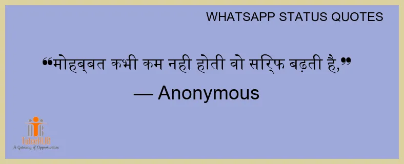 मोहब्बत कभी कम नही होती वो सिर्फ बढ़ती है,