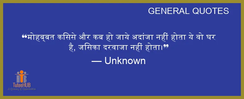 मोहब्बत किससे और कब हो जाये अदांजा नहीं होता ये वो घर है, जिसका दरवाजा नहीं होता।