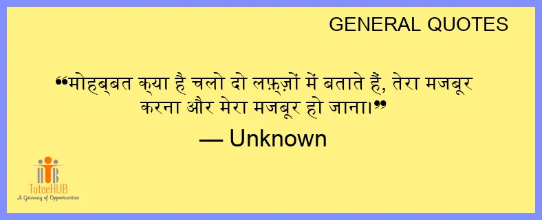 मोहब्बत क्या है चलो दो लफ़्ज़ों में बताते हैं, तेरा मजबूर करना और मेरा मजबूर हो जाना।