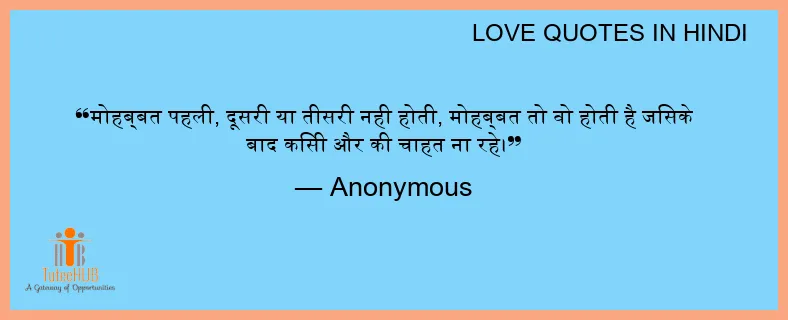 मोहब्बत पहली, दूसरी या तीसरी नही होती, मोहब्बत तो वो होती है जिसके बाद किसी और की चाहत ना रहे।
