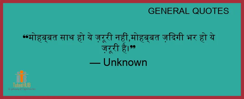 मोहब्बत साथ हो ये ज़रूरी नहीं,मोहब्बत ज़िंदगी भर हो ये ज़रूरी है।